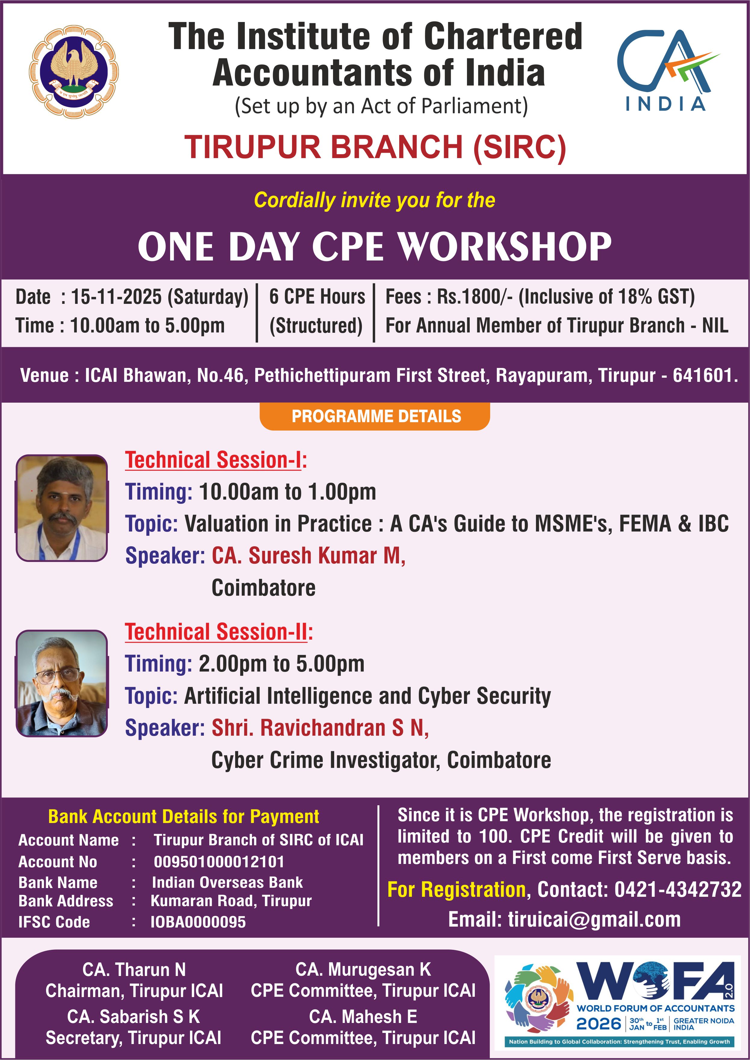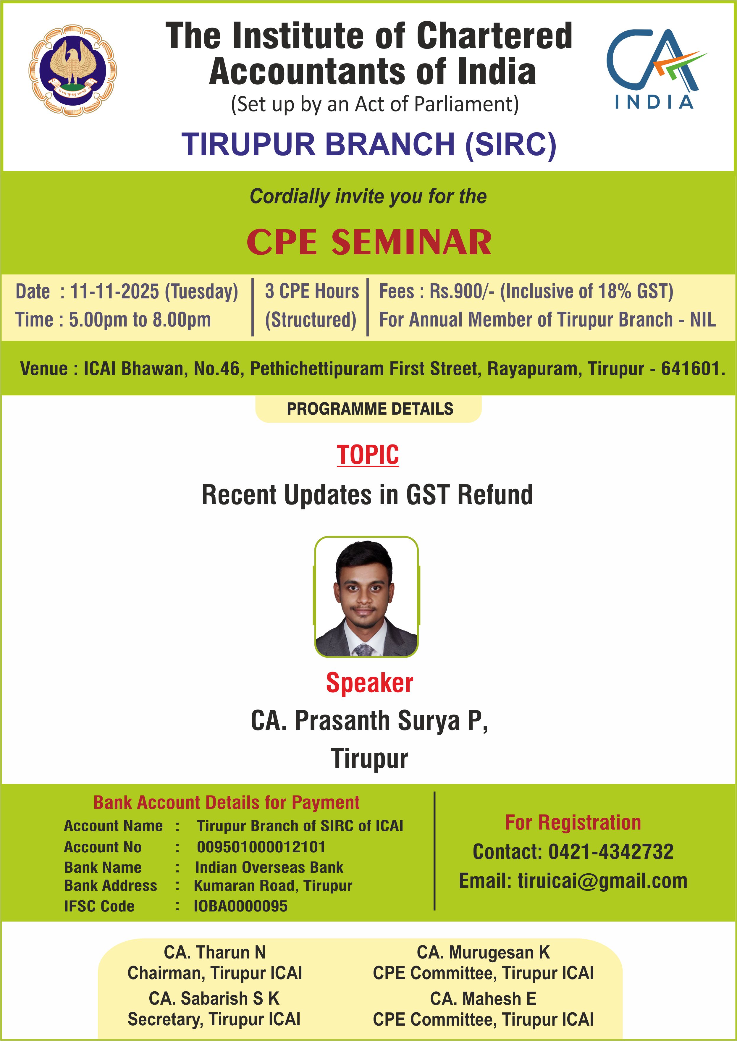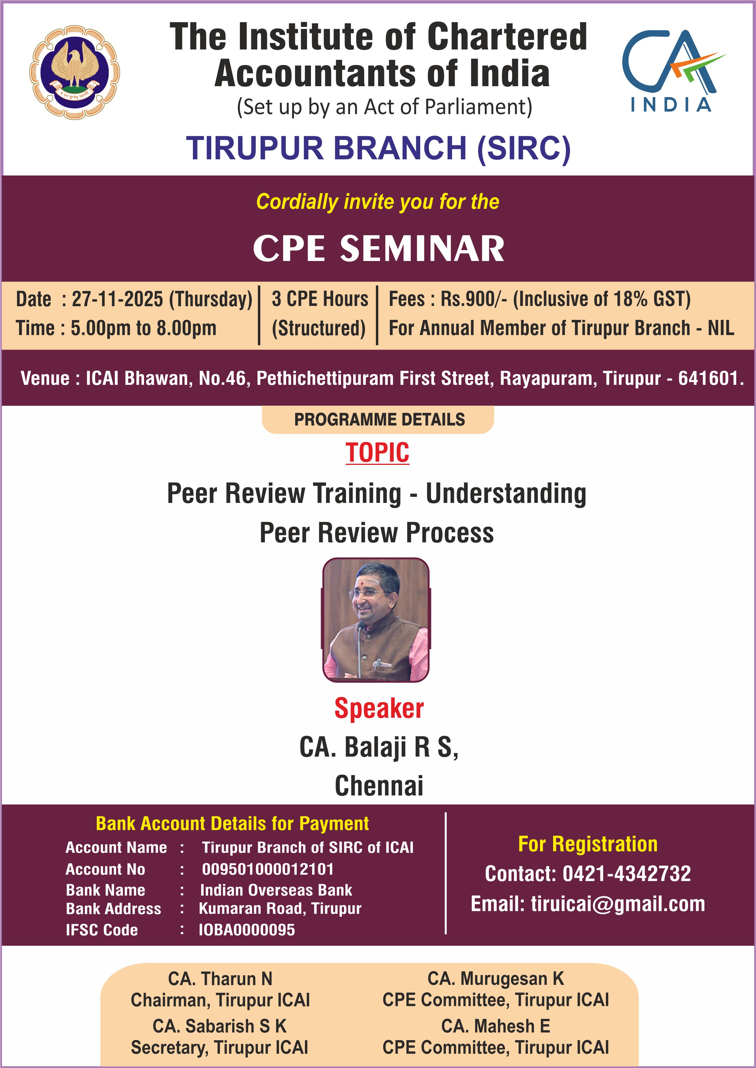 Hosted By :- ICAI - Tirupur Branch (SIRC)