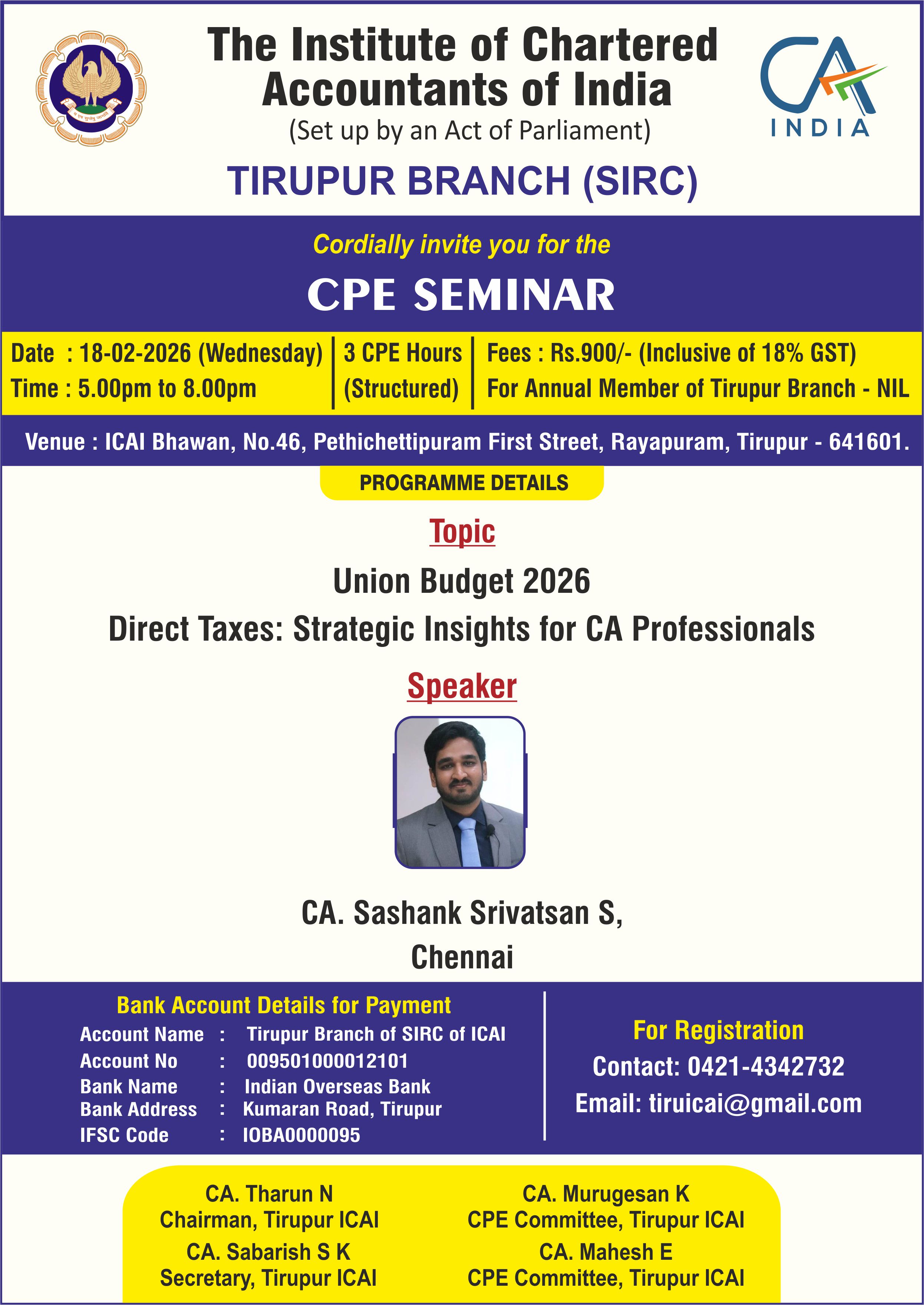 Speaker :- Dr. CA. Abhishek Murali, Regional Council Member, SIRC of ICAI