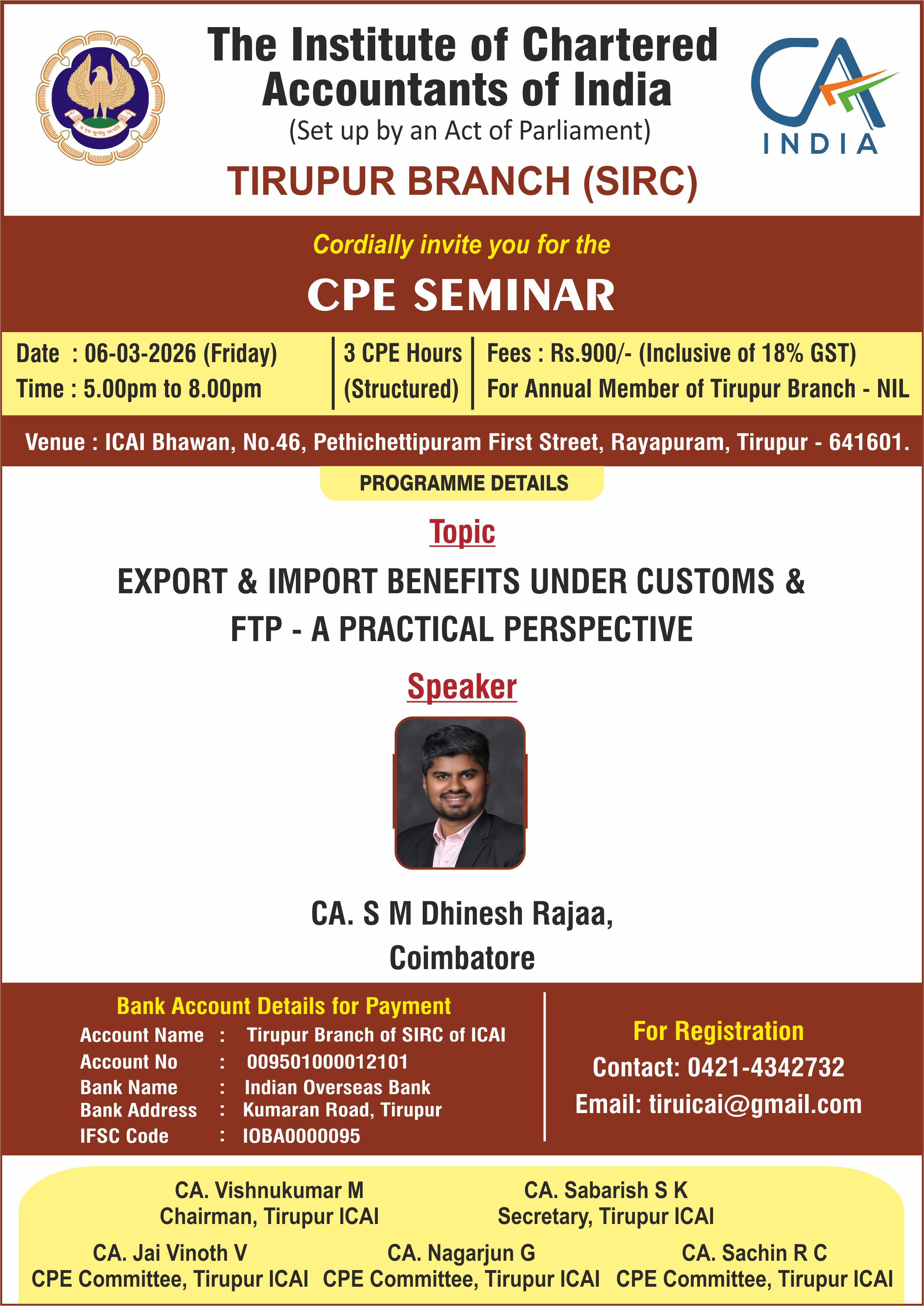 Venue :- ICAI Bhawan, Tirupur