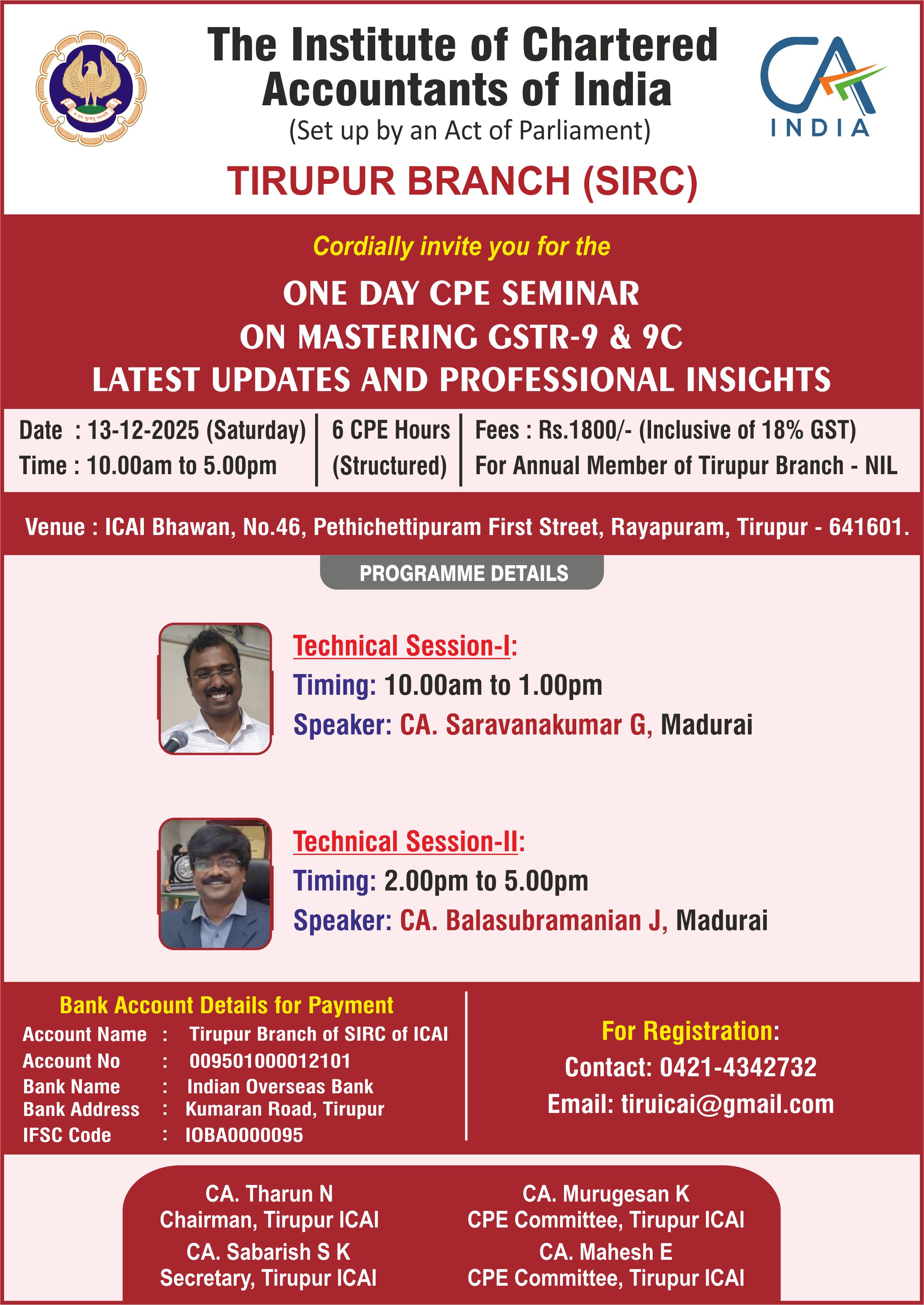 Hosted By :- ICAI - Tirupur Branch (SIRC)