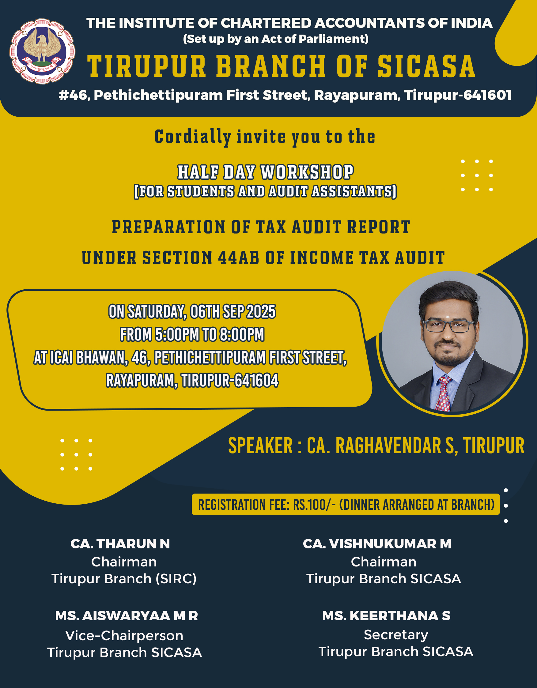 Venue ICAI BHAWAN, TIRUPUR