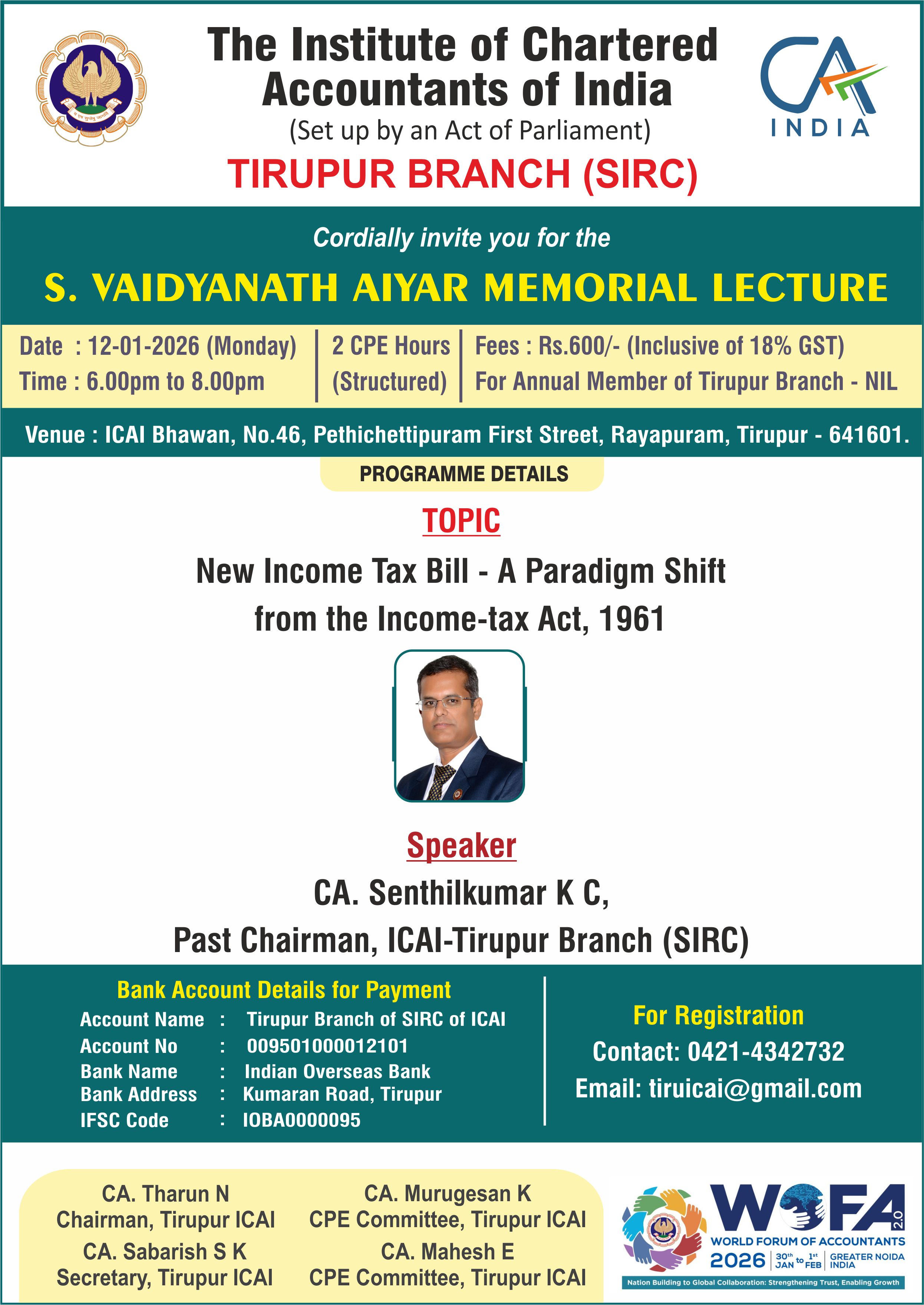Venue :- ICAI Bhawan, Tirupur